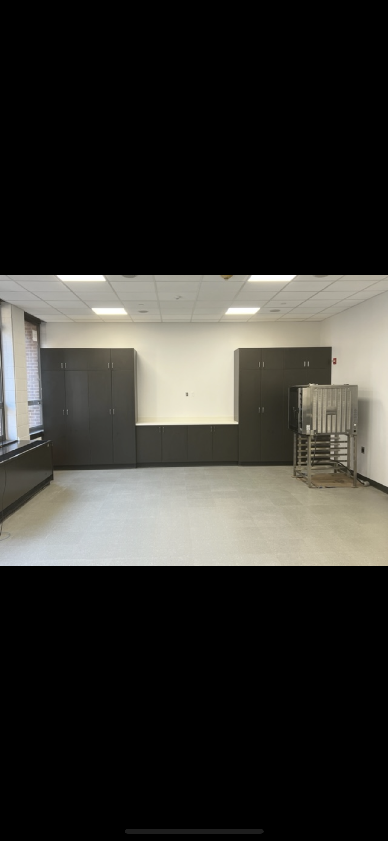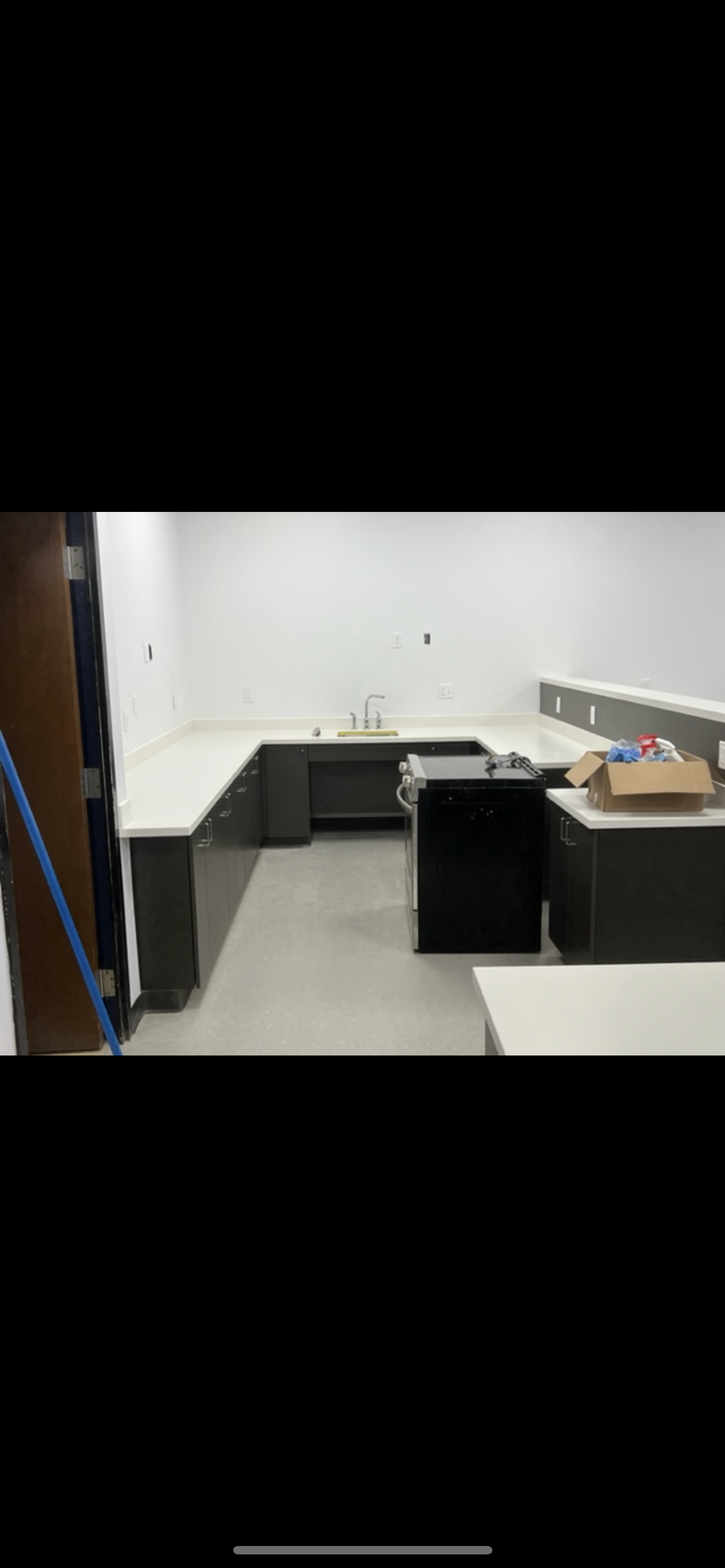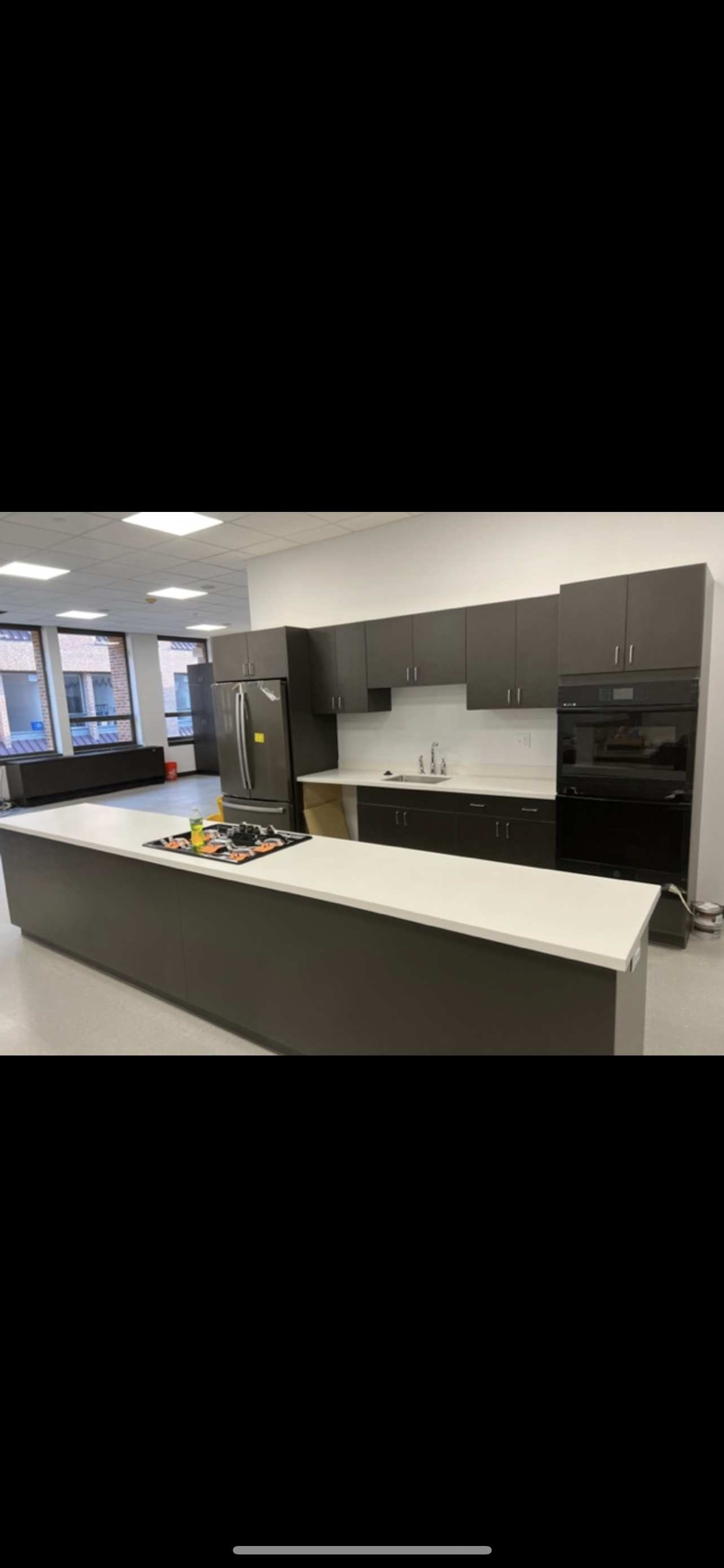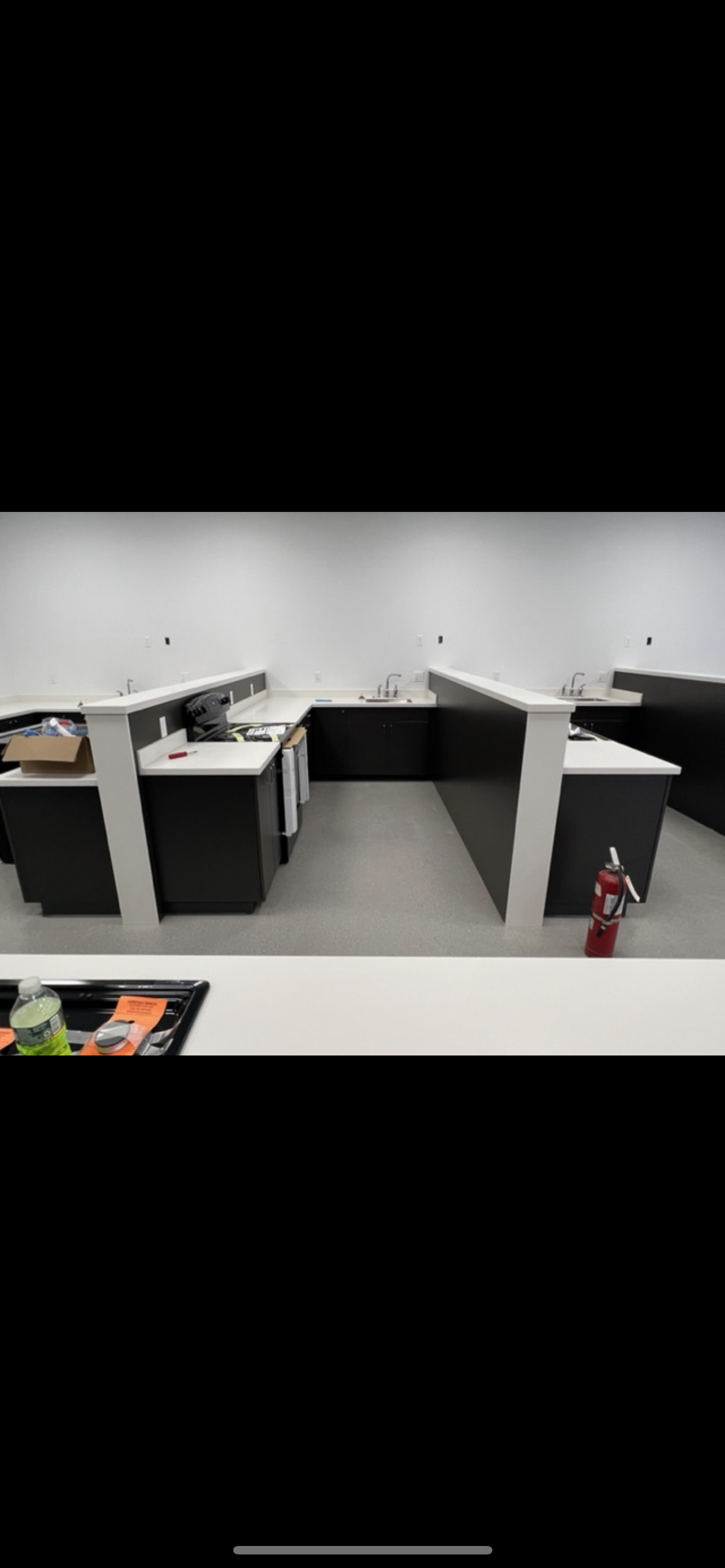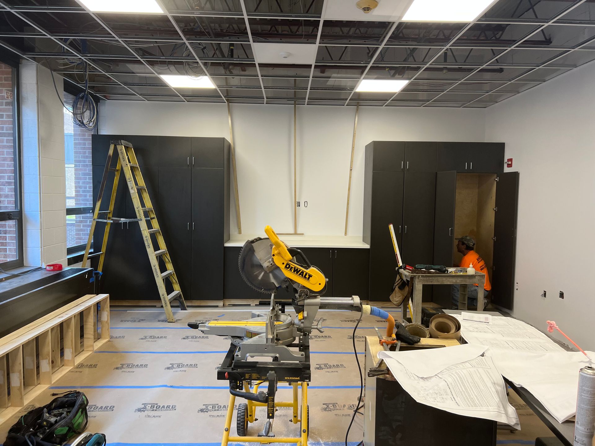 Demolition of economics classroom and renovation to new at hall high school. ceiling floor walls counters cabinetry and student learning areas.